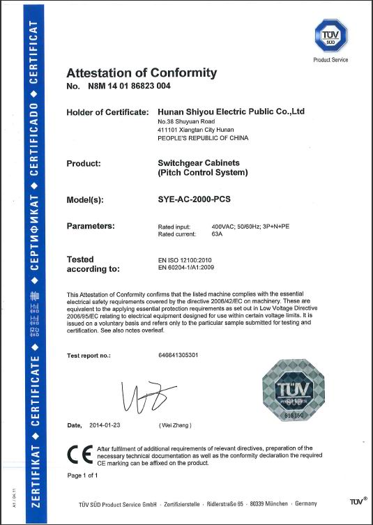 經(jīng)世界權(quán)威認(rèn)證機(jī)構(gòu)德國TUV的嚴(yán)格評(píng)審,世優(yōu)電氣風(fēng)力發(fā)電機(jī)組電控系統(tǒng)全系列產(chǎn)品榮獲歐盟CE認(rèn)證。