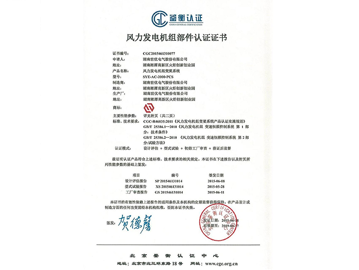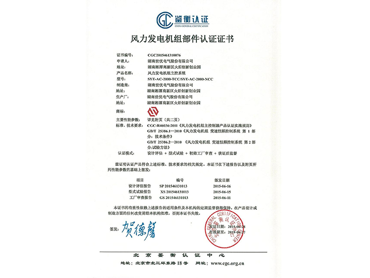 風(fēng)力發(fā)電機(jī)組主控系統(tǒng)鑒衡認(rèn)證